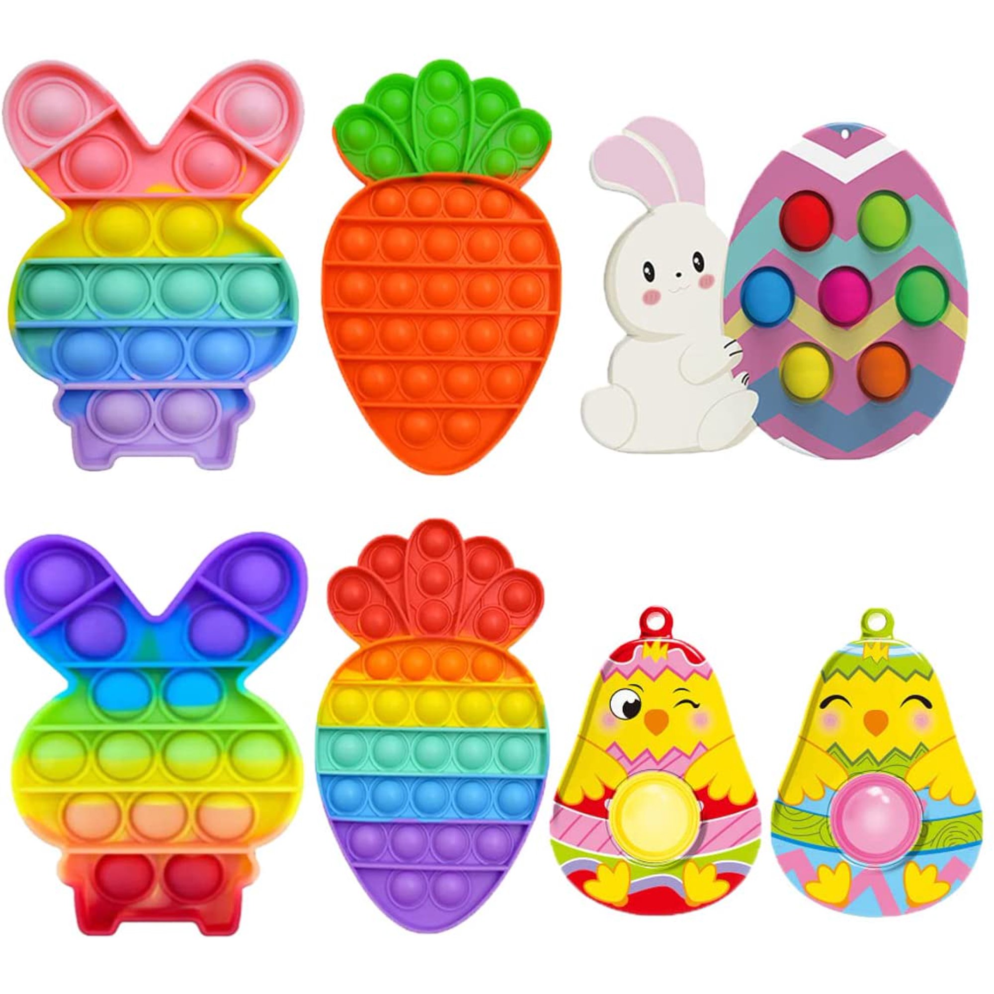7pcs Rainbow Easter Poppet Fidget Toy Pack Rabbit Easter Eggs Carrot Push Pop Fidget Toy Anxiety Relief Stress Relief Sensory Toy For School Supplies Camping Easter Gifts For Kids And